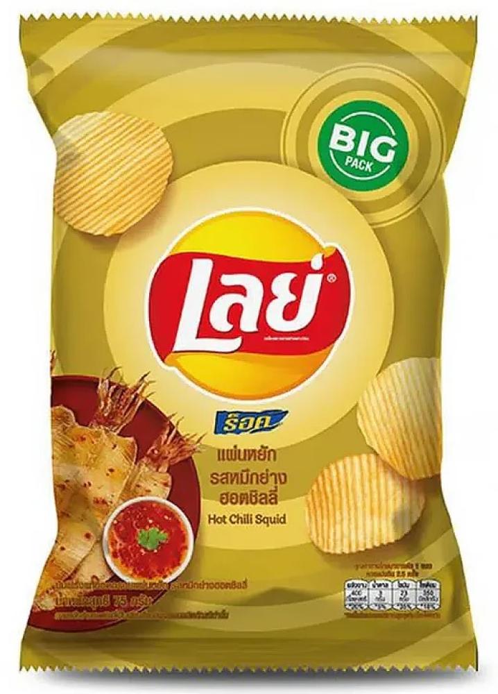 بطاطس ليز العالمية المعروفة من انتاج تايلند المعروفين بالنكهات الآسيوية المجنونة ، بنكهة فريدة ومميزة من الحبار مع الصوص الحار، تجربة جديدة ومختلفة من الضروري الخوض في غمارها والتمتع بها